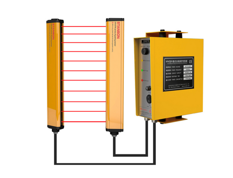 Фотоэлектрическое устройство безопасности «Световая завеса безопасности» — это сложная система безопасности, предназначенная для защиты персонала и оборудования в промышленных условиях. Он состоит из передатчика и приемника, которые излучают и обнаруживают завесу инфракрасных световых лучей. Когда объект или человек прерывает световые лучи, устройство мгновенно отправляет сигнал остановки связанному оборудованию, останавливая его работу во избежание несчастных случаев. Это устройство обычно используется в местах, где существует риск получения травм от движущегося оборудования, например, рядом с прессами, роботами и конвейерами. Фотоэлектрическое защитное устройство защитной световой завесы представляет собой сложную систему безопасности, предназначенную для защиты персонала и оборудования в промышленных условиях.